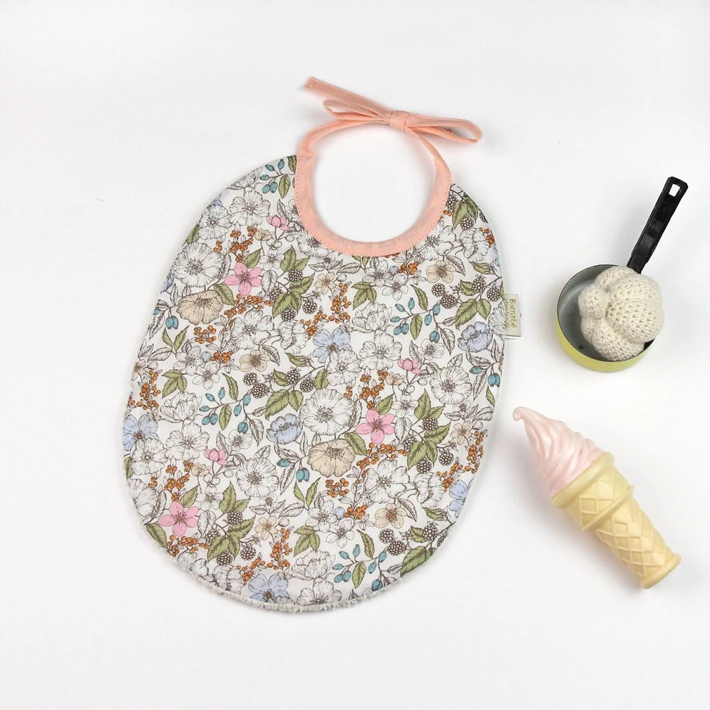 Un coté en éponge pour éviter toutes les catastrophes et un coté en joli tissu Liberty… Ce grand bavoir aux couleurs éclatantes fera un très joli cadeau de naissance !