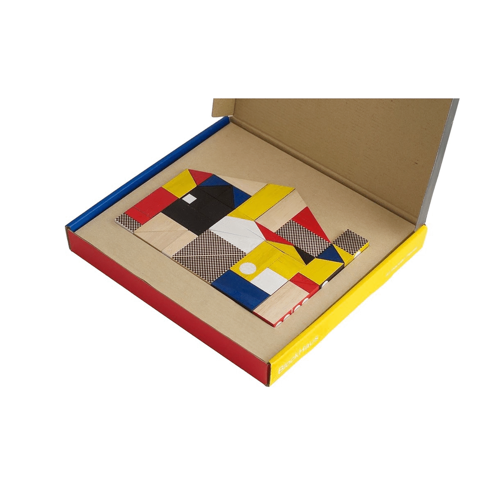 Cet ensemble de 40 blocs en hévéa modulaires, fabriqués à la main, contient aussi un tangram.