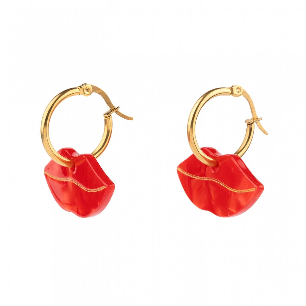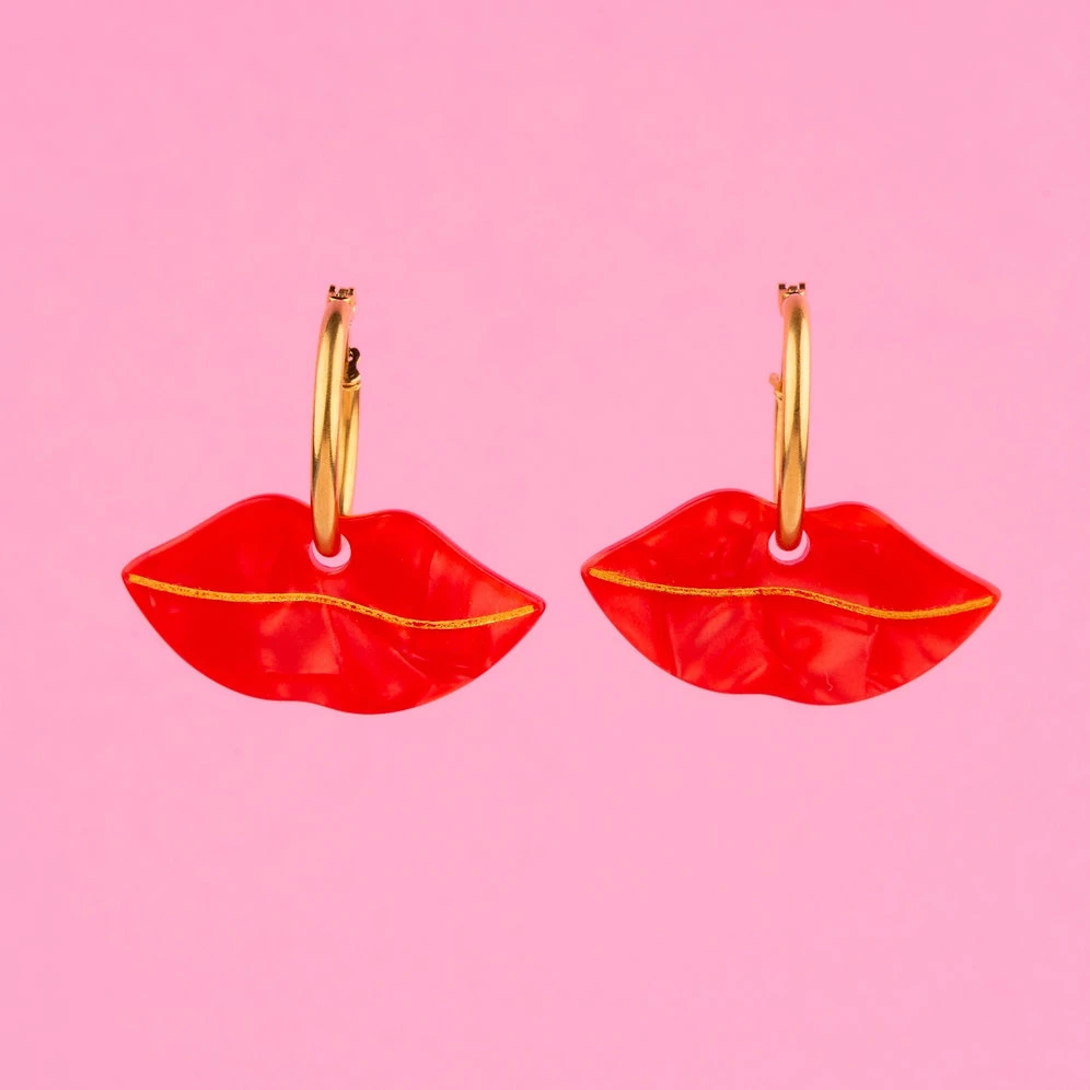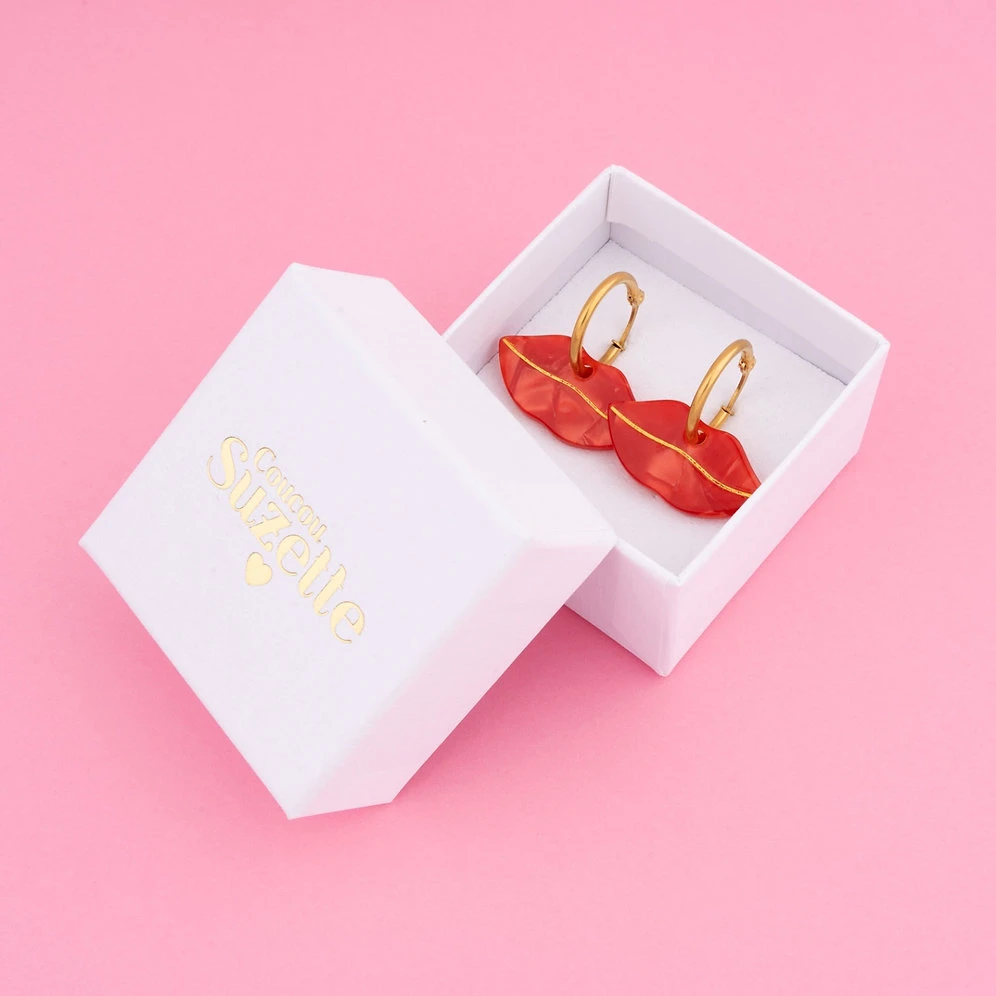 Glamour et sensuelle cette paire de boucle d’oreille de la marque kitsch et rĂ©tro Coucou Suzette est une invitation au baiser.