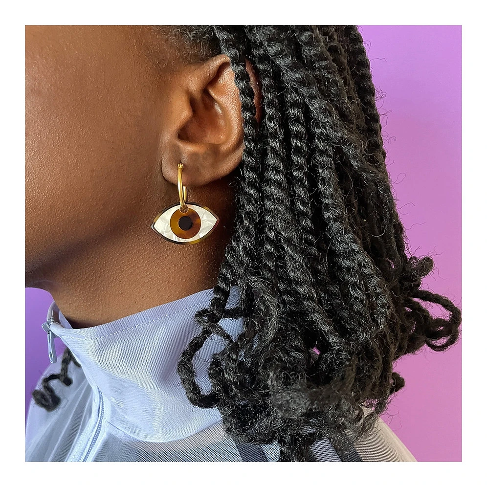 Avec ses iris marron noisette cette paire de boucle d’oreillede la marque kitsch et rĂ©tro Coucou Suzette Ă un charme fou !