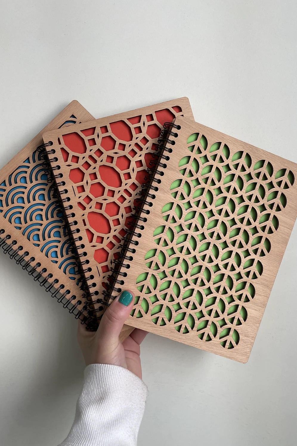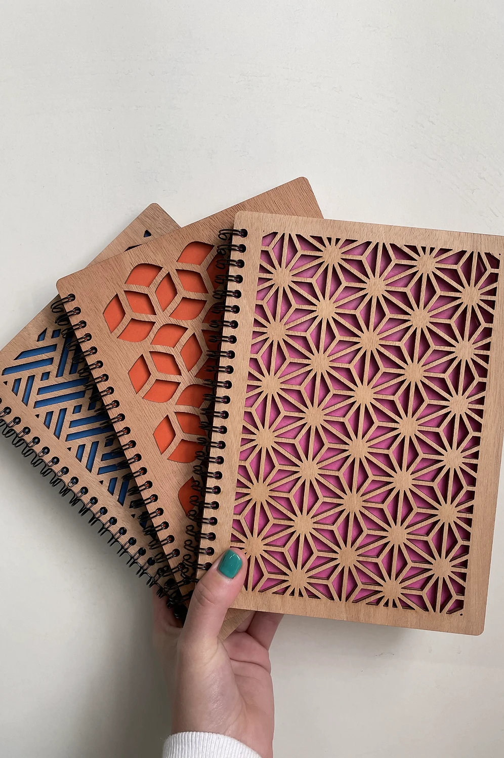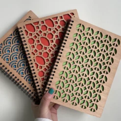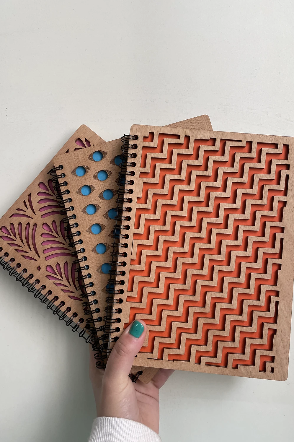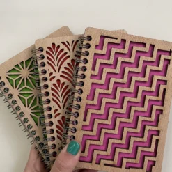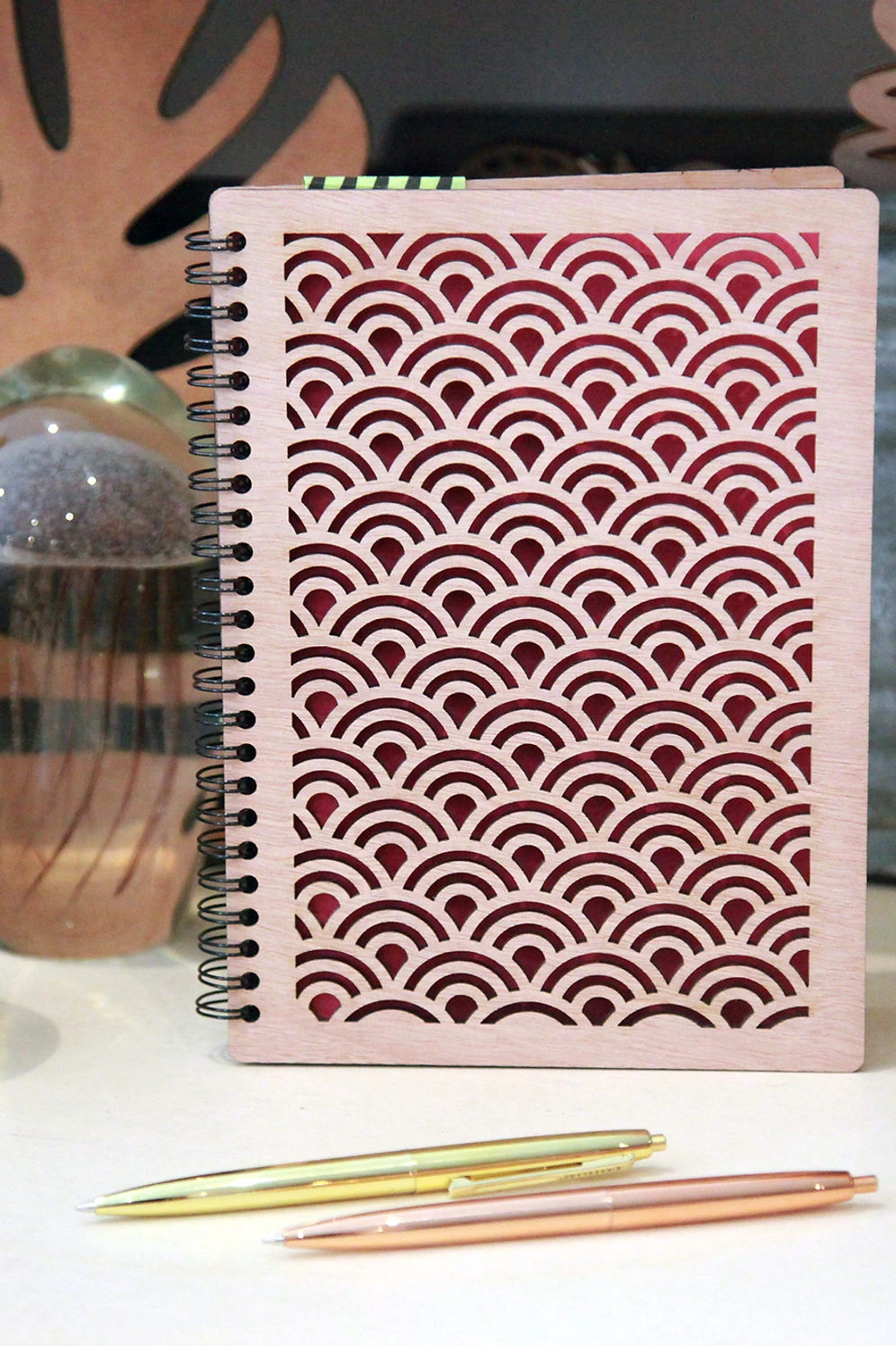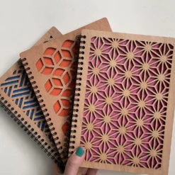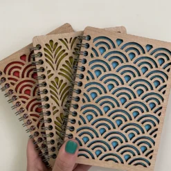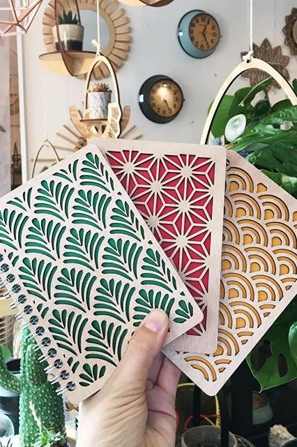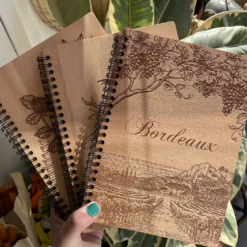 Composé de 2 faces en bois CP PEFC de 3mm, les carnets sont fabriqués par nos soins à la découpe laser et assemblés avec amour dans notre atelier bordelais.