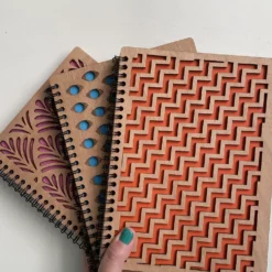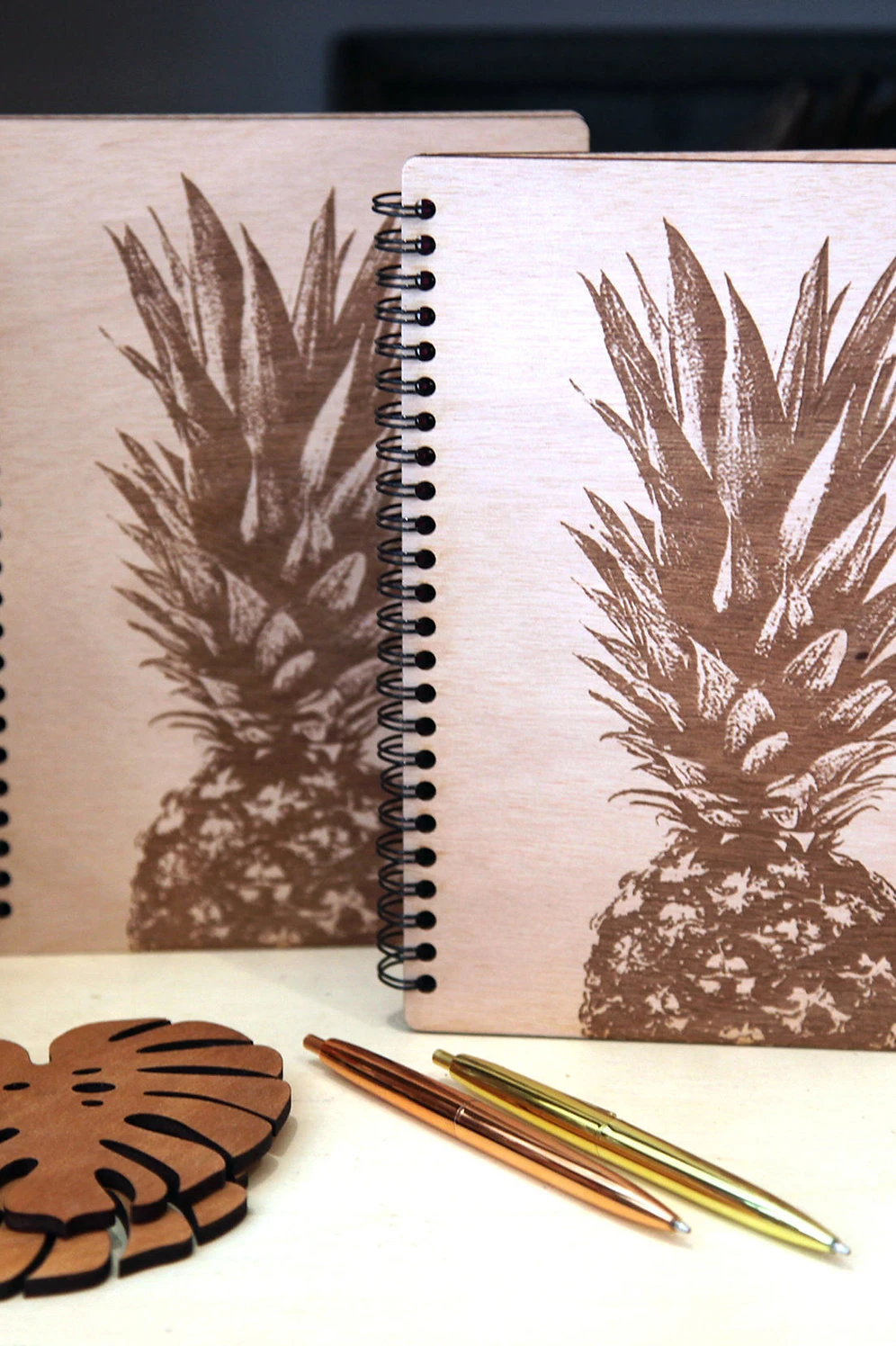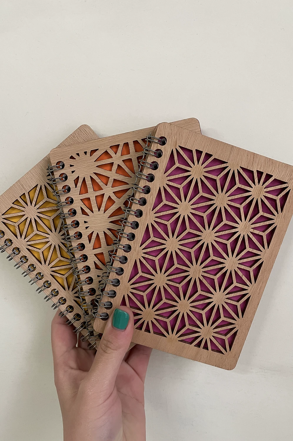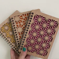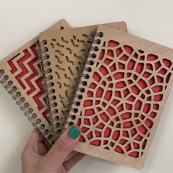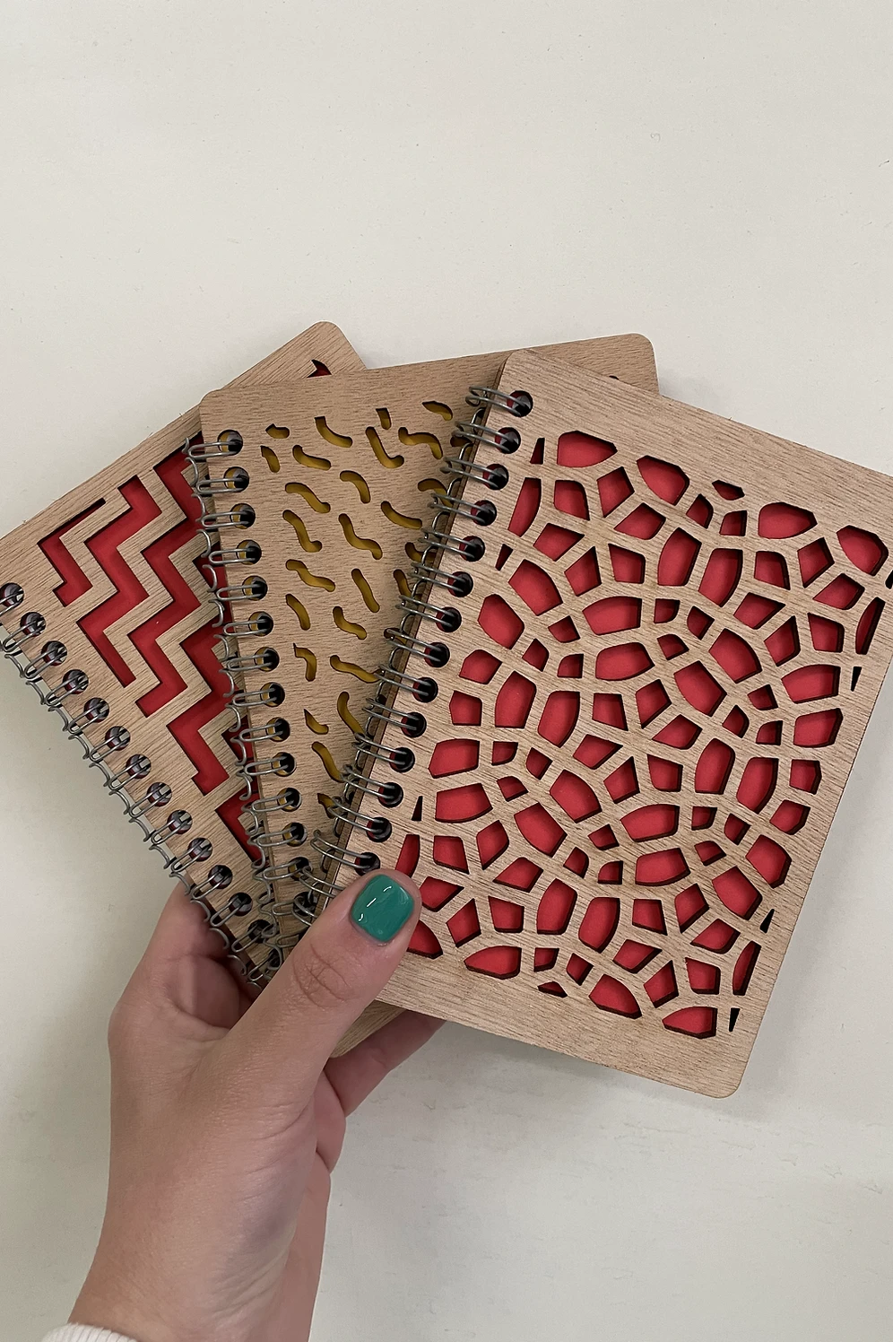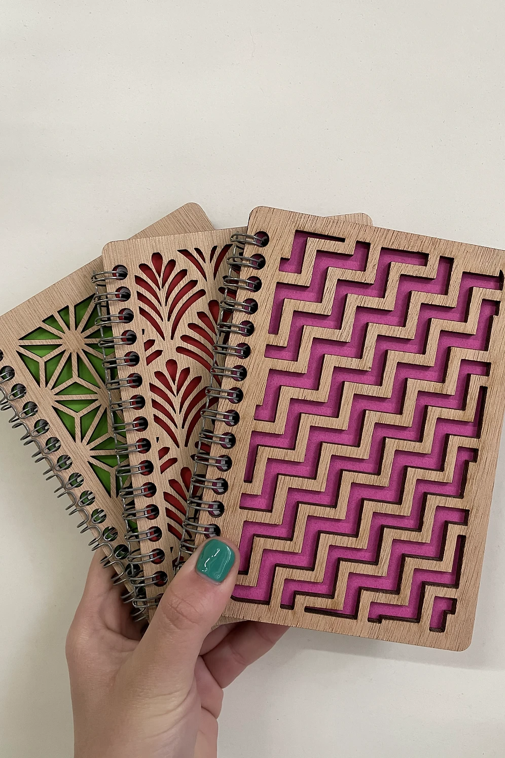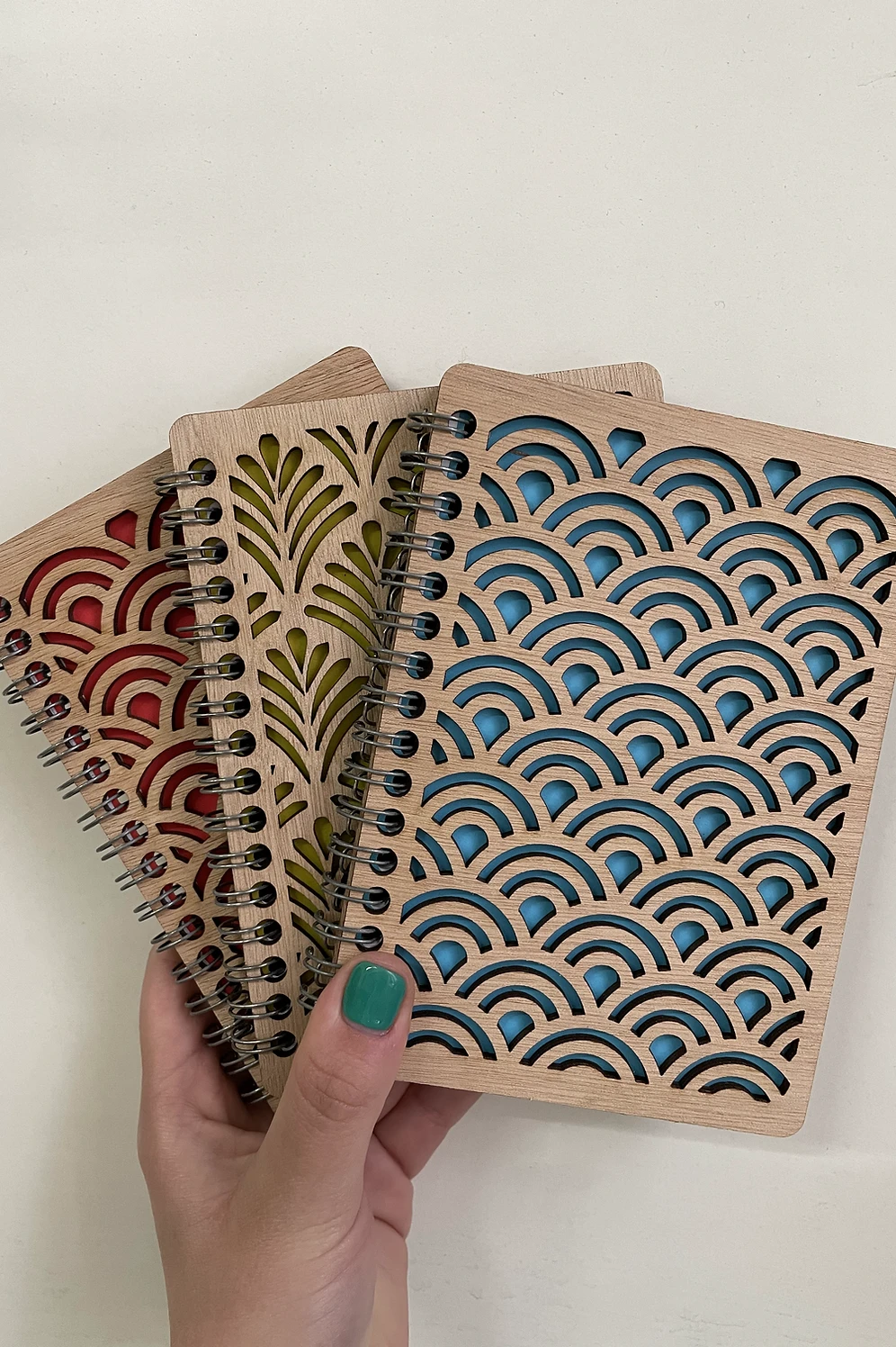 Composé de 2 faces en bois CP PEFC de 3mm, les carnets sont fabriqués par nos soins à la découpe laser et assemblés avec amour dans notre atelier bordelais.