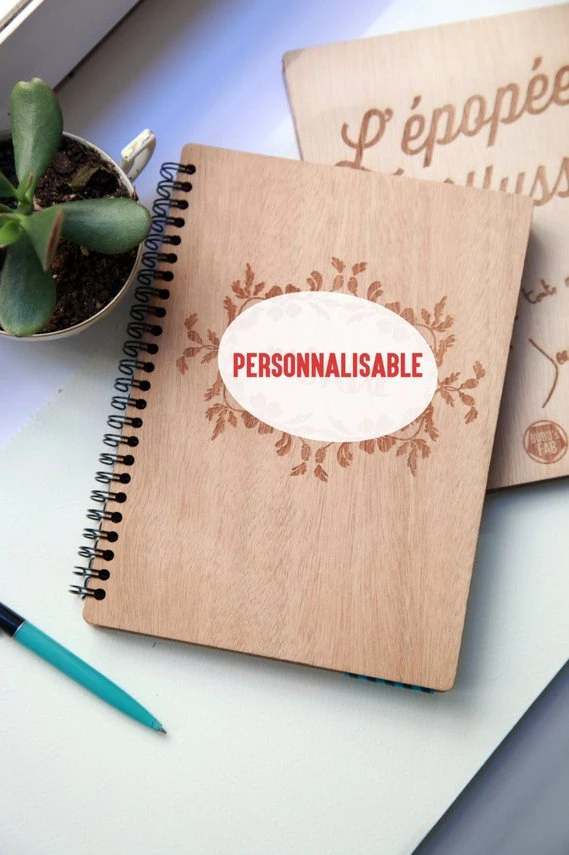 Choisissez le motif, logo, dessin, texte ou photo en bonne définition que vous souhaitez faire graver à l’avant du carnet et envoyez-nous vos fichiers par mail afin que nous puissions réaliser vos visuels.