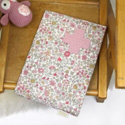 Véritable tissu Liberty® anglais. La croix est en cuir d’agneau, et on peut apercevoir des petites étoiles sur la croix pour rendre le tout agréable et plein de fantaisie.