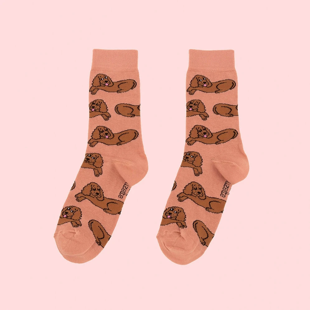 Enfiler les chaussettes pour ĂŞtre au chaud avec ce cocker tout mignon.Â