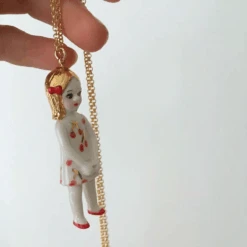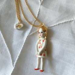 Sautoir en Laiton dorĂ© Ă l’or fin et en porcelaine.