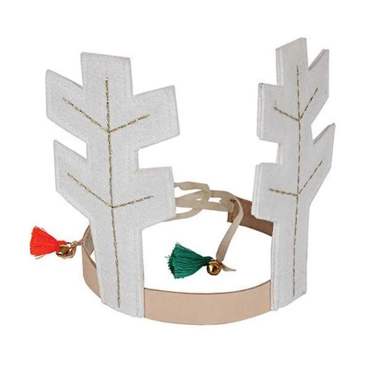 Jolie couronne de bois de renne pour vos enfants. Elle accompagnera le dĂ©guisement de votre enfant pour toutes les occasions. Un lien permet de l’attacher facilement derrière la tĂŞte.