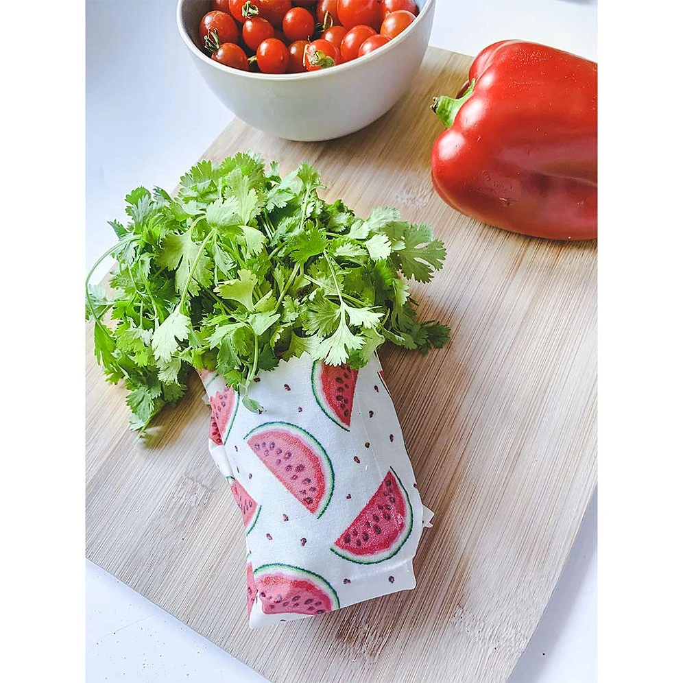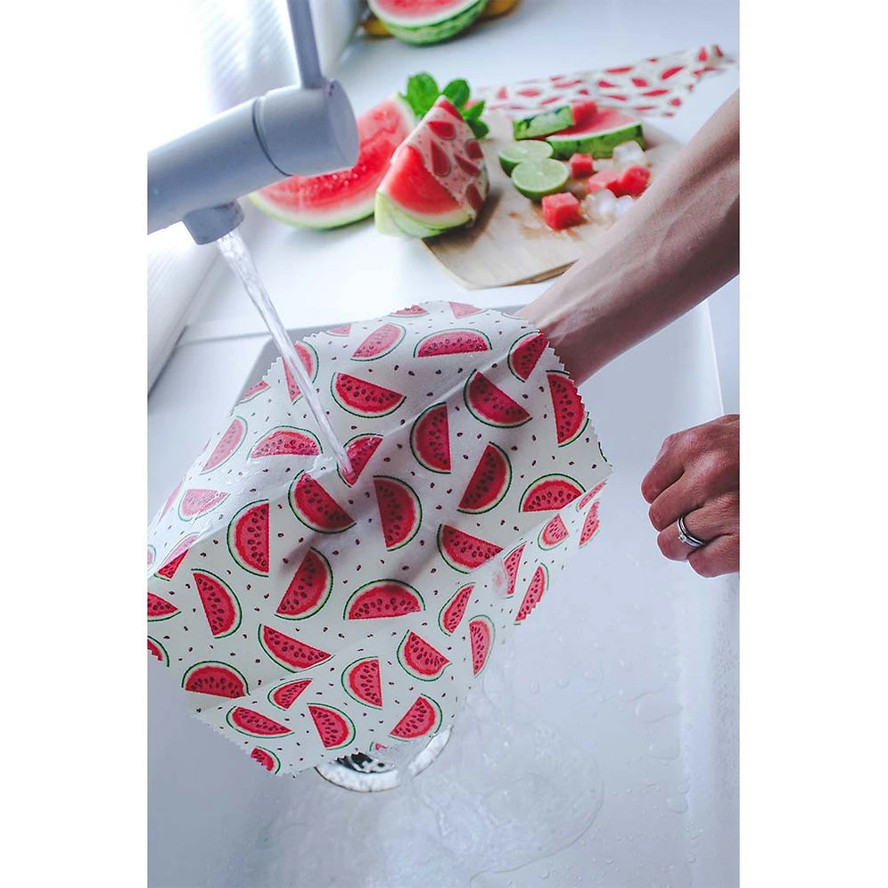 Adieu le film plastique et le papier aluminium et bonjour les BEE WRAPS ! Le film alimentaire Ă©cologique et super fun pour vos aliments. 3 tailles sont comprises dans le pack :Â