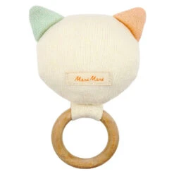 Ce hochet bébé, chat en coton biologique, orné de broderie avec des oreilles en tissu doux, est un excellent cadeau. Ce chaton émet un doux bruit et dispose d’un anneau de préhension en bois.