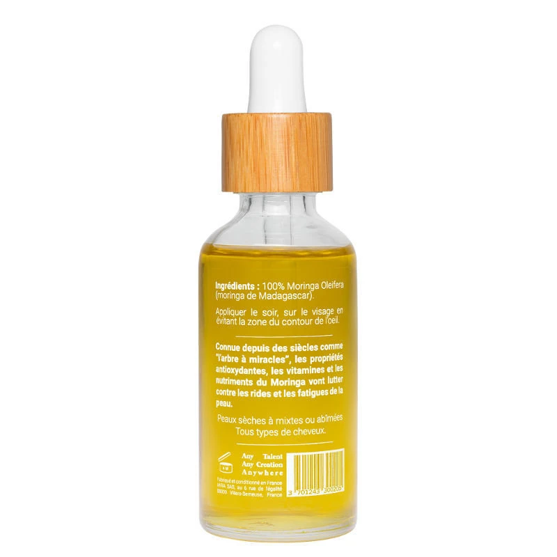 Pour redonner souplesse et Ă©lasticitĂ© Ă votre peau, utiliser l’huile de Moringa, issue d’arbres de Madagascar. Elle possède des acides gras (omĂ©ga 6 et 9) et des vitamines (A,B,C,E). L’huile de Moringa est utilisĂ©e depuis des siècles dans de nombreux pays d’Afrique.