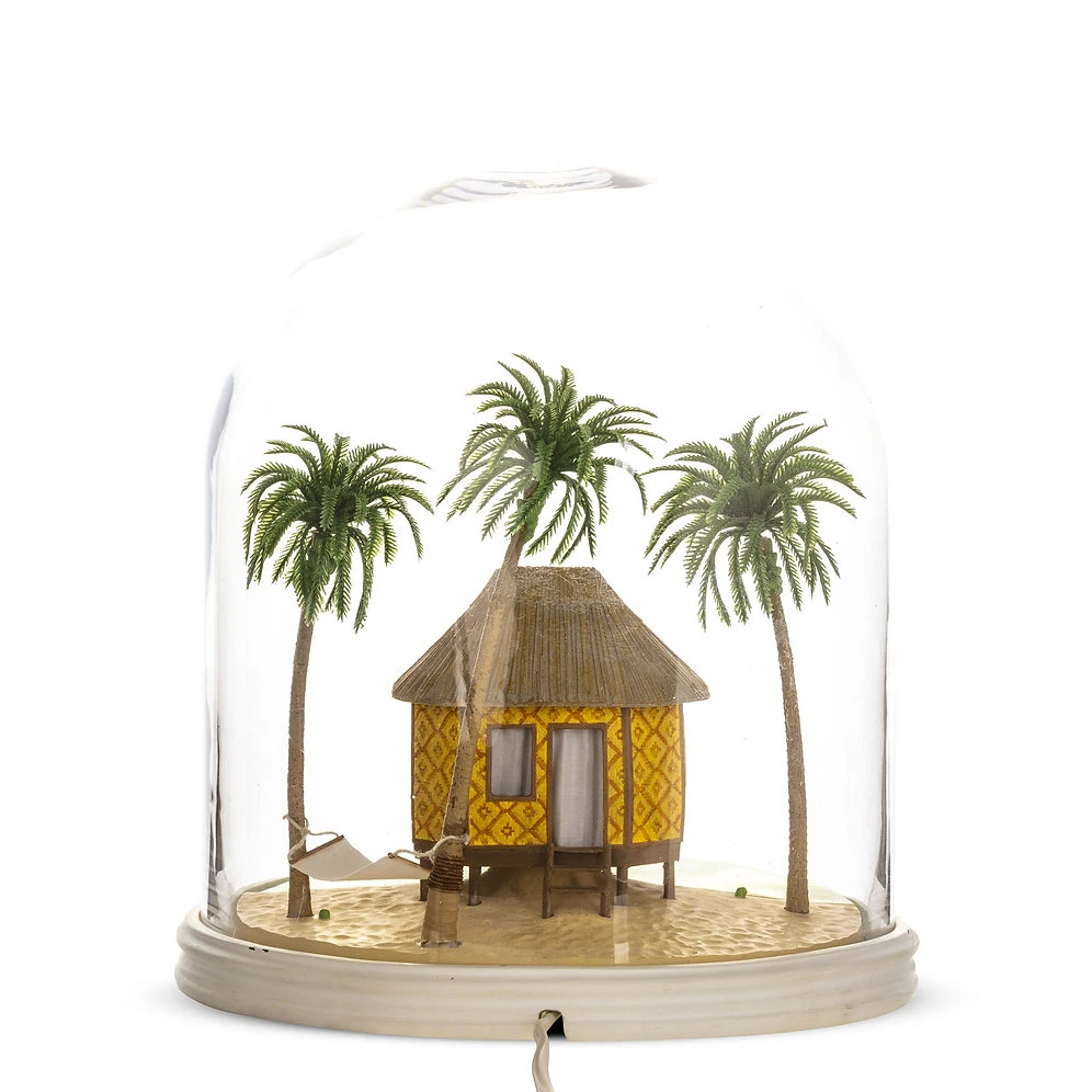 Pour profiter d’un coin de paradis rien que pour soi ! Cette petite cabane sous cloche en verre vous donne une vision tropicale d’un petit coin de bonheur exotique. Cette lampe poétique est l’oeuvre du célèbre Marcantonio Raimondi Malerba.