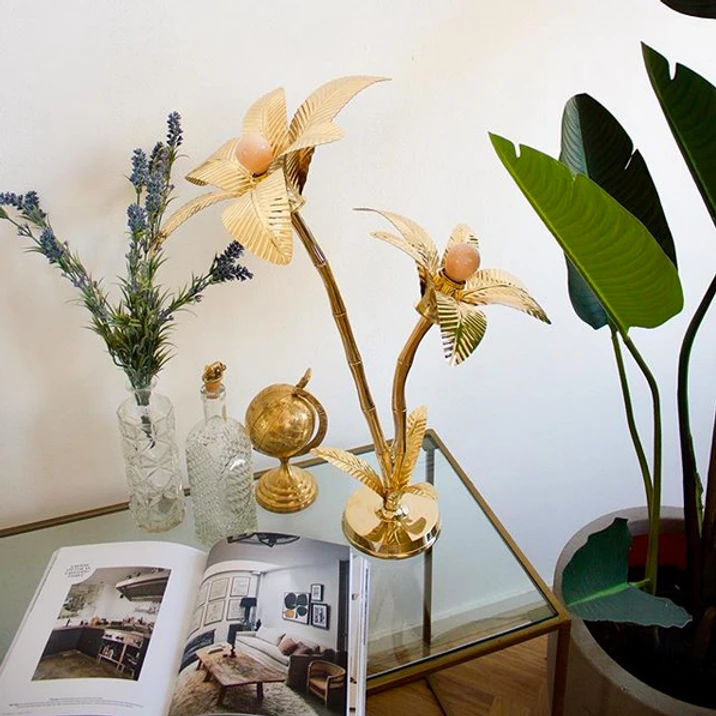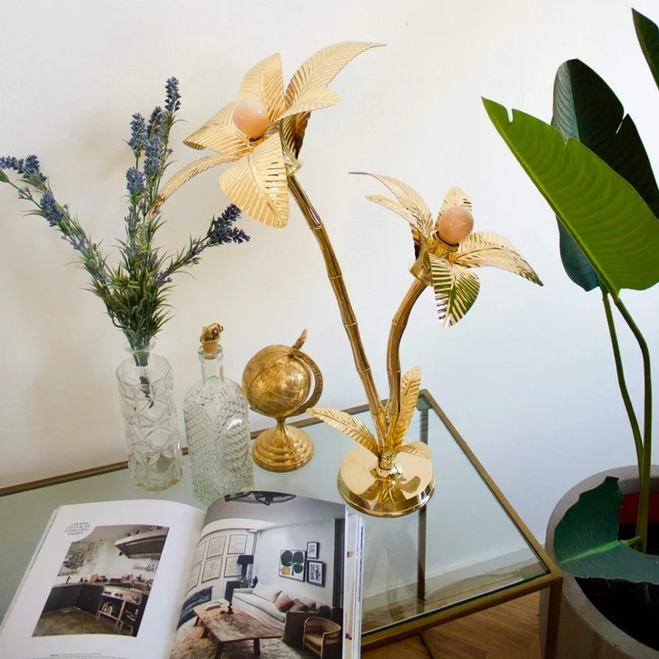 Lampe palmier en laiton dorĂ© tellement 70’s.
