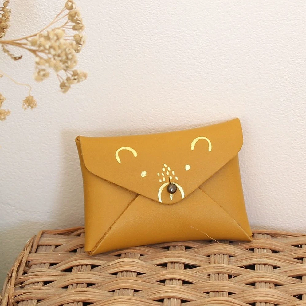 Mini pochette ourson en cuir, disponible en plusieurs couleurs. La mini pochette va vous permettre de ranger vos objets précieux, vos écouteurs ou votre monnaie.
