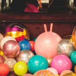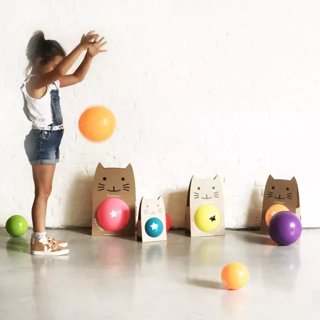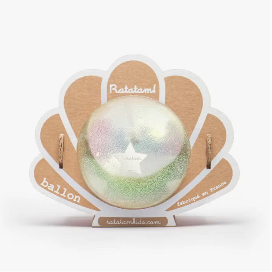 Adorable ballon pour enfants de 10 cm, présenté dans un emballage en forme de coquillage.